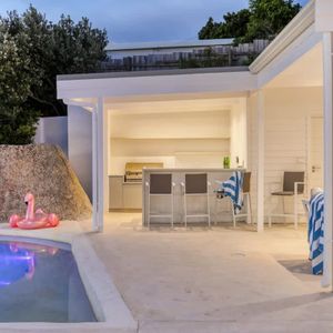Extensive terraces and balconies are situated on each level of the house, offering breathtaking mountain and sea vistas. Dine under the stars with friends at the built-in barbeque on the pool deck or float in one of the two splash pools as you savour the views.