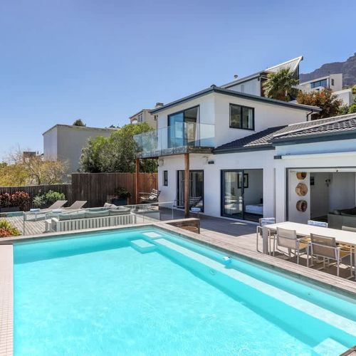 Ty Gwyn (meaning White House in Welsh) is a modern, recently re-furbished villa located in a quiet street in the exclusive suburb of Camps Bay, just minutes away from the sea, restaurants and bars of Camps Bay.