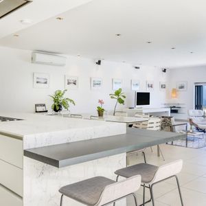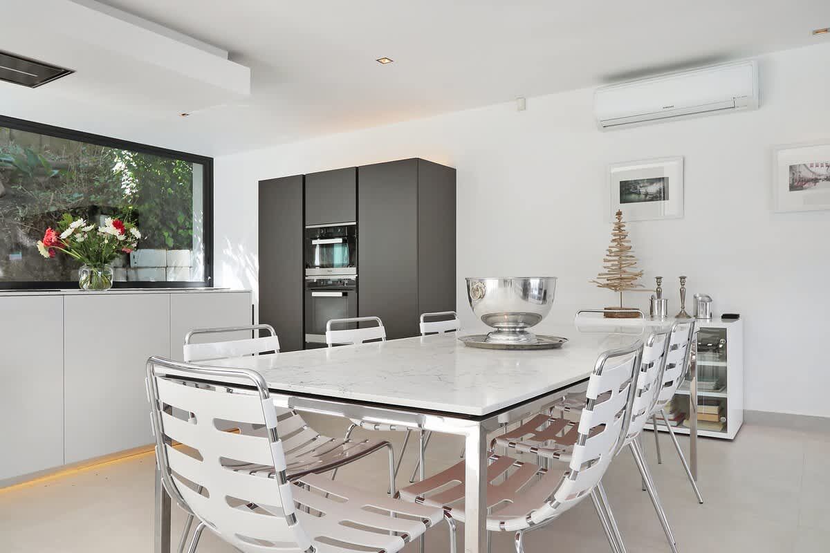 Decorated throughout in a sleek contemporary style, the villa is split on two levels. On entering the villa, you are greeted with the open plan lounge, dining and recently renovated high-spec kitchen area.