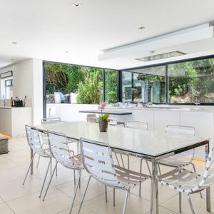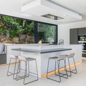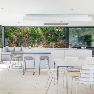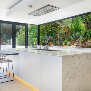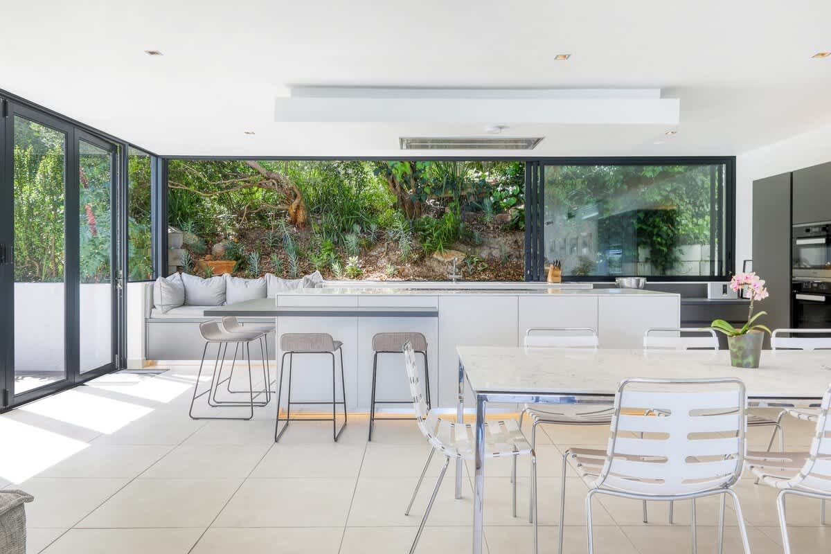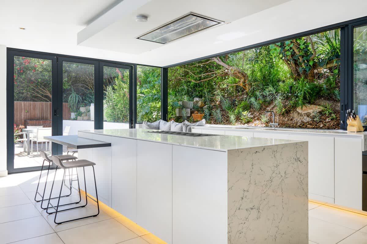 • Glass stacking windows that open up the kitchen to the outside garden