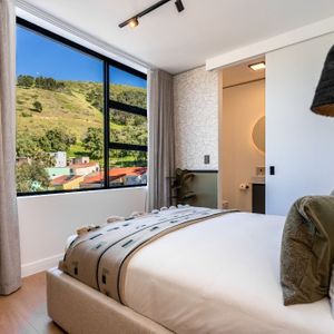 Two beautifully appointed bedrooms provide a peaceful retreat, each featuring plush queen-sized beds and en-suite bathrooms. The layout is ideal for couples, families, or friends traveling together, offering both privacy and convenience.