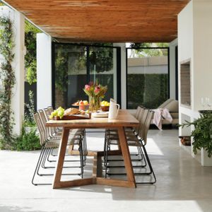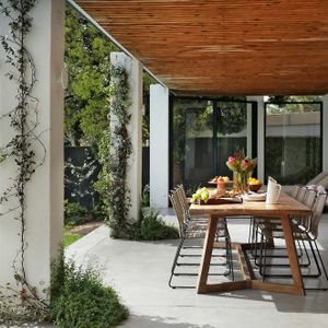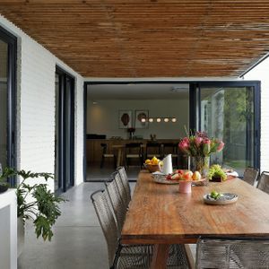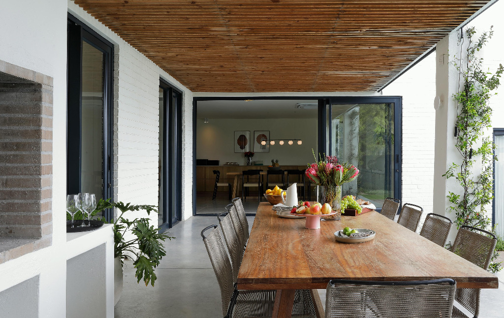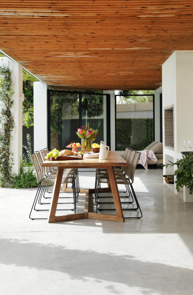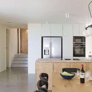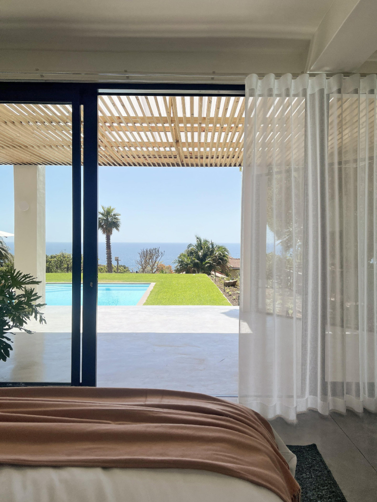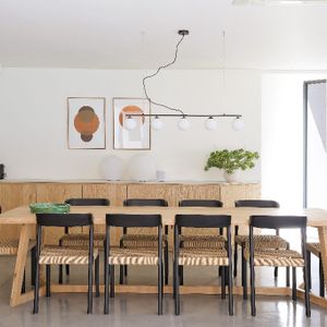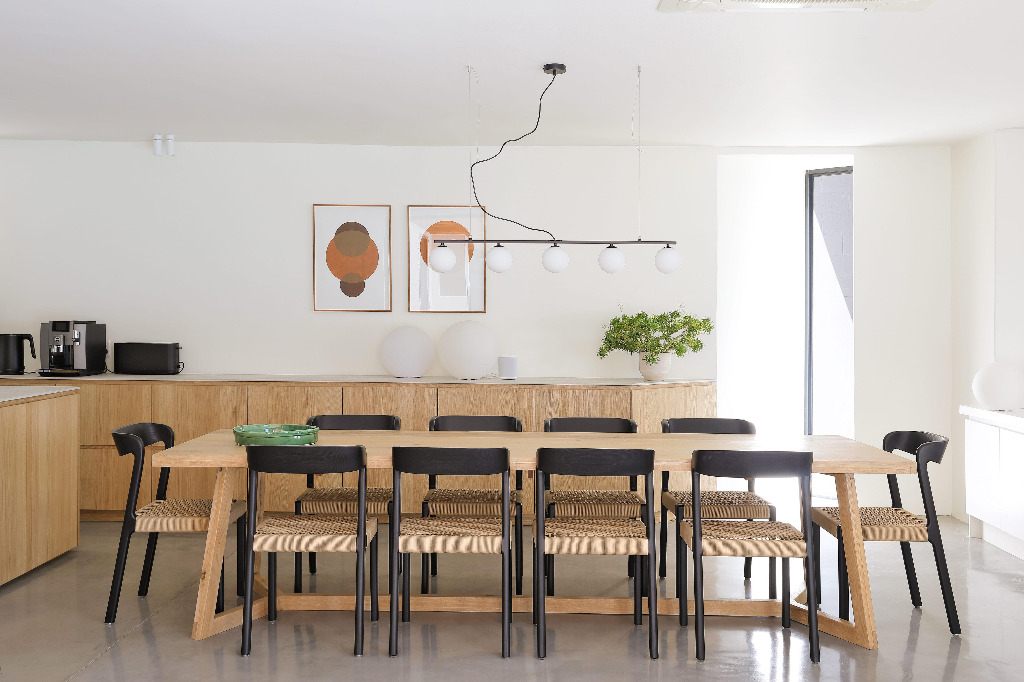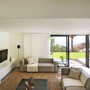 This stunningly renovated five-bedroom house is the ideal retreat for a family holiday in the sun. The open-plan kitchen and dining area seamlessly extend to a terrace that overlooks a sparkling pool, creating a perfect indoor-outdoor living space.