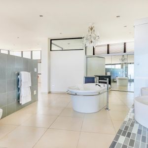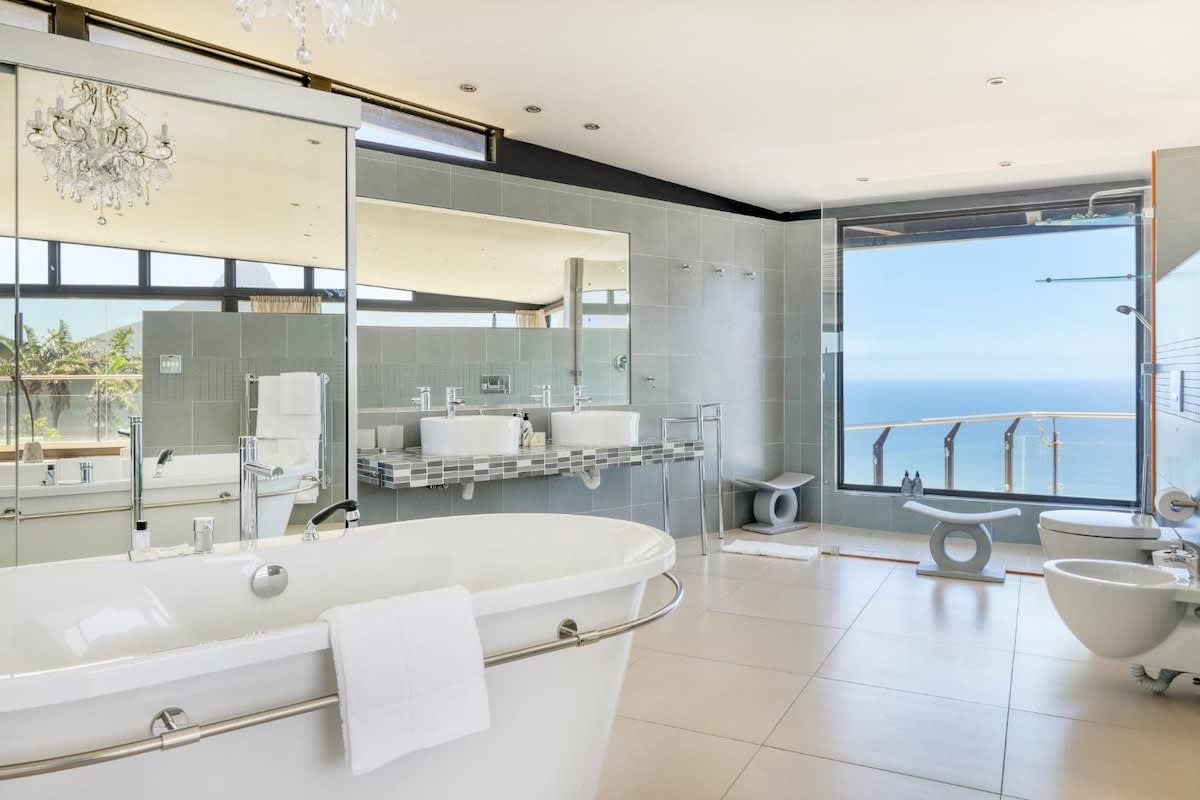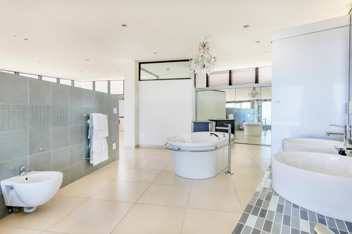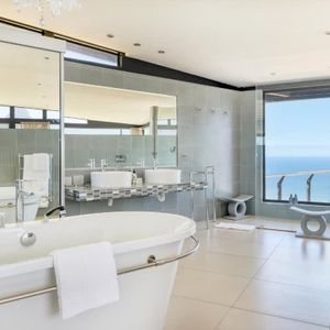 The master suite occupies the top level, featuring a private lounge area, an open-plan bathroom, and breathtaking 360-degree views of Camps Bay. It's a sanctuary of tranquility where you can indulge in unparalleled privacy and luxury.